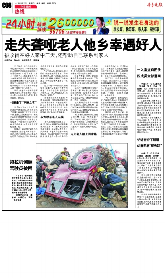 走失聋哑老人他乡幸遇好人