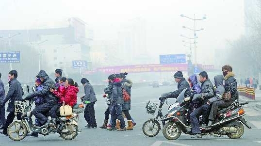 17日,在经十路与舜耕路交会处,一辆载着四个人的电动车让路人替他们的安全捏了把汗,更巧的是,后面一辆摩托车上也挤了四个人,如此“挤车”,着实危险。 本报记者 王媛 摄