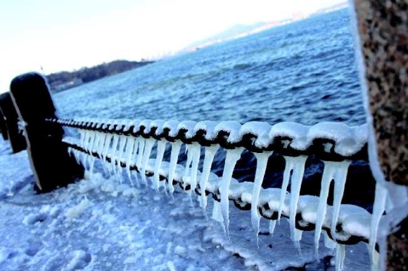 拍摄时间:1月26日拍摄地点:烟台老家作品描述:春节期间回烟台老家,第二天就迫不急待地带着孩子一起去看海。适逢寒冬,海边的栏杆都结了冰,铁链上的一条条冰挂非常好看,很像鲨鱼张着血盆大口,让人不寒而栗。特此留影,带回南方给那些没有见过雪的朋友见识下,呵呵。相机型号:佳能500D作者:孙明浩奖金:30元