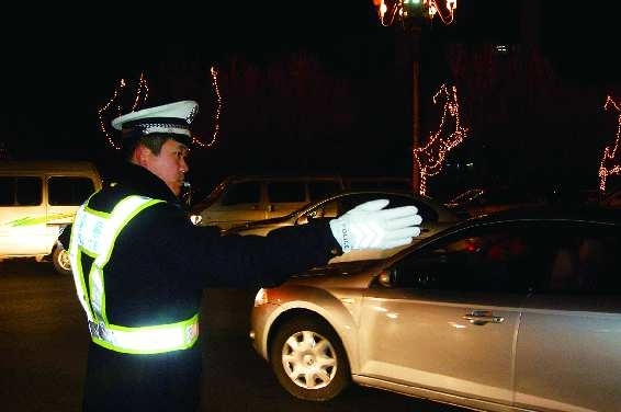 6.在通往清风湖景区的路口上,交警正在指挥过往的车辆。