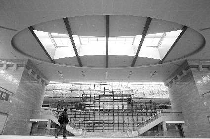 23日,在烟台市新博物馆,施工人员正在完善烟台室内最大的主题浮雕。据了解,新博物馆建设工程已经进入最后冲刺阶段,预计整个工程将于3月底结束,在完成文物对接和布展后,新博物馆包括文物库房、多功能报告厅、中央大厅、4D影院、展厅、互动区、多媒体区、办公区和空中花园等部分都将向市民免费开放,将成为一座集中反映烟台人文历史的综合性现代化博物馆。