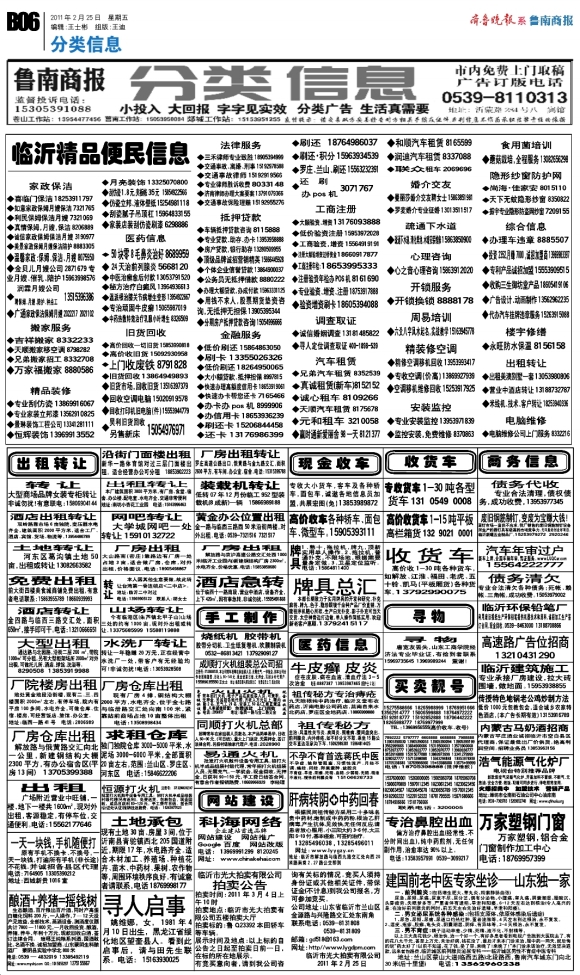 鲁南商报·分类信息