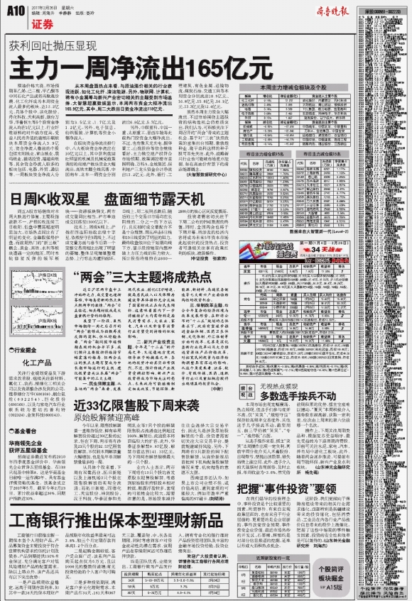 主力一周净流出165亿元