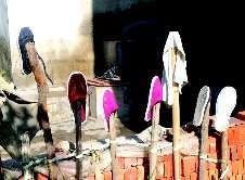 作品描述:遇到这么好的阳光,木桩也很给力,冒充晾鞋架帮主人晒鞋。