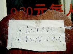 记者赶到现场时发现,公厕的门已经被锁上,窗户上贴着:同志们,对不起,因停水暂时停用。该公厕承包人陈先生告诉记者,他从2005年公厕建成后就开始承包,停水的现象从来都没有出现过。“从1月5日就开始停水了,到现在都两个月了,这边公厕的用水和摩登百货是一条线的,他们说因为年前天气冷,水管冻住了,无法正常使用,现在也没有人给我个说法,我就只能在这里等着。”陈先生很无奈地说。