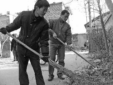 16日下午,在越河街道兴隆社区铁路局宿舍楼前,40余位居民拿着铁锨、扫帚等工具,清理一个废弃小花园里的垃圾。虽然风很大,参加义务劳动的居民干得挺起劲,两个多小时的时间清理了十余车垃圾。