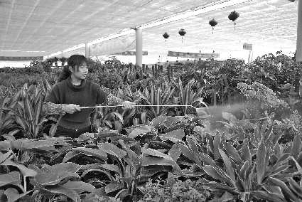 每逢一些“好日子”,买花的市民都会骤增。据济宁高新区的一处花卉市场里的一位花卉销售商介绍,近期,因为公司开业及乔迁新居来购花的市民特别多,一旦碰上“好日子”,花卉的销售就会出现井喷的局面,生意火得不得了。图为,一位花卉销售商在忙里偷闲打理花卉。