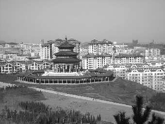 接近山脚处有大亭一座,据居民们称,是南尧集团依北京天坛按1:4比例缩小,供小区居民游玩、乘凉所建,做工精美,亭子顶端制有龙凤呈祥图案,下面以板砖铺成太极图形。