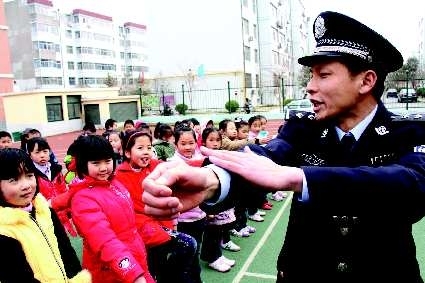 24日,圣荣小学二年级学生孙晓研的父亲孙德宝正在为学生规范队列动作。即日起,该校学生家长都可以在学校内“开课教学”。校方表示,家长们来自不同岗位,拥有不同的专业知识,是学校丰富的“校外资源”,可以促进学生综合素质的提升。