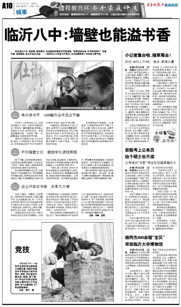 临沂八中:墙壁也能溢书香