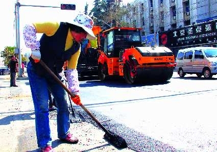据现场的一位施工人员介绍,本次施工的为光明路与文化路之间的振兴路段,预计当天便可完工。 本报记者 张斌 李强 摄影