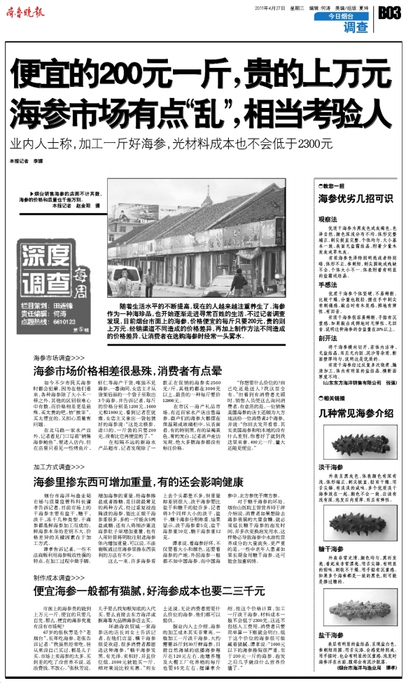 便宜的200元一斤,贵的上万元海参市场有点“乱”,相当考验人