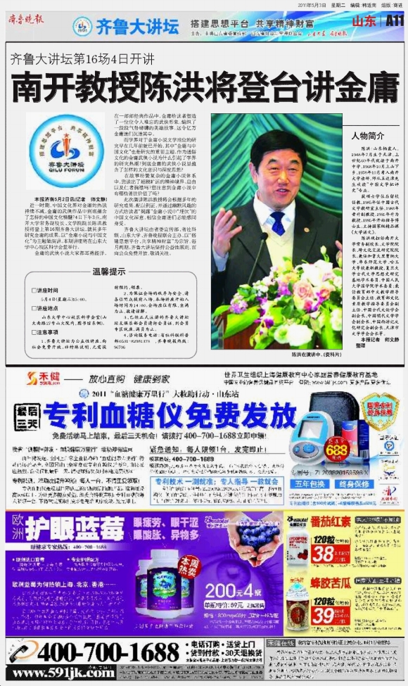 南开教授陈洪将登台讲金庸
