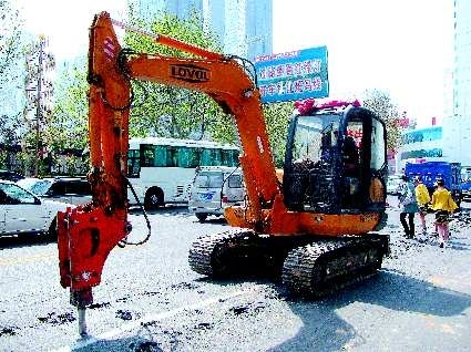 5日上午9点多,记者来到解放路北段,看到多台挖掘机正在施工。路边还停放着烟台市自来水公司和城市排水管理处的车辆,各家单位在自己的施工区内施工。