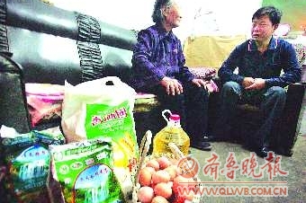 “邵大娘,要保重身体,你这种精神状态真是挺难得。”9日下午,爱心市民程守庆在看到报道后,专门打电话到今日运河编辑部,表示想去探望一下邵士平和其子小新。下班后,在本报记者的指引下,程守庆来到她的家中,并专程买来了米、面、油、鸡蛋等一些生活用品。下午5点多钟,小新刚刚起床,邵士平刚刚从社区门诊部里打针回来,炉灶上温好的饭菜小新还没有吃。