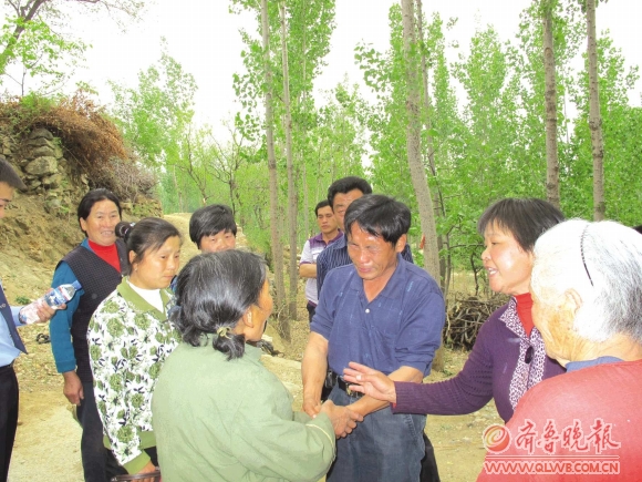5月7日,宁阳县蒋集镇村民侯承利(右三)终于找到了走失十七年的母亲。十七年中,他们兄妹四个为寻找母亲历尽艰辛,其中一人还下定决心找不到母亲就不结婚,如今三十多岁了还单身一人。图为母子相见时,侯承利紧握着母亲的手泣不成声。