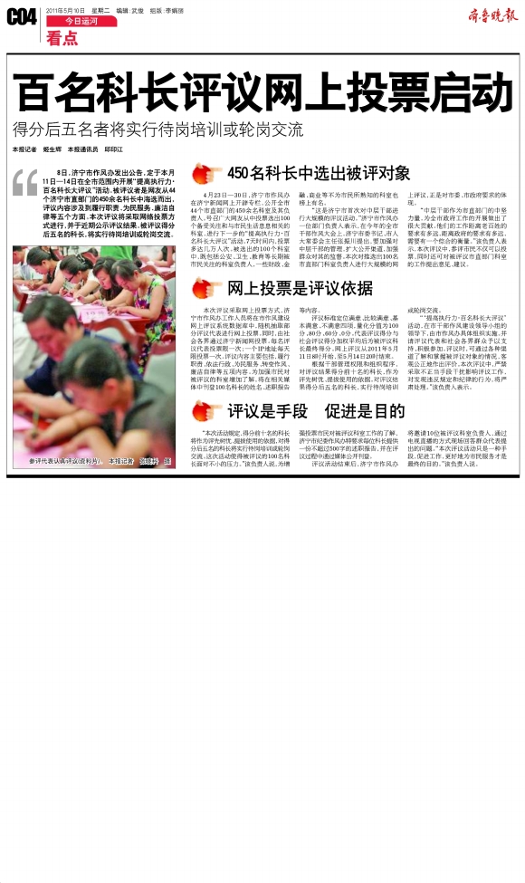 百名科长评议网上投票启动