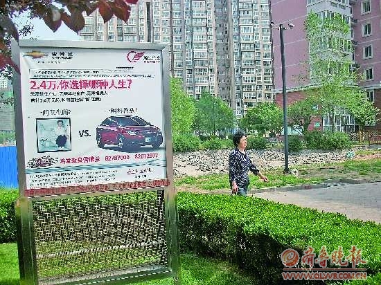 省城不少小区里都立着广告牌,但是对于这部分收入,不少居民表示不知情。  见习记者 陈伟 摄