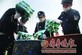 15日上午,青岛市公安部门在胶州市宁波路集中销毁了一批假冒名牌箱包、服装和伪劣食品等,共计案值3000余万元。这是青岛市在公安部打击侵犯知识产权和制售伪劣商品犯罪“亮剑”专项行动中取得的战果。