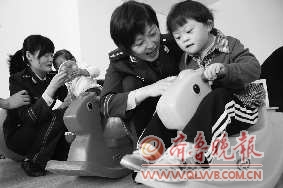 13日,在青岛市残疾人康复中心,残障儿童正在接受团体心理辅导。当日,在第21个全国助残日来临之前,山东海警第二支队的官兵们精心编排了心理辅导游戏,让残障儿童与健全孩子一样体会到社会的关爱。 本报记者 张晓鹏 摄影报道