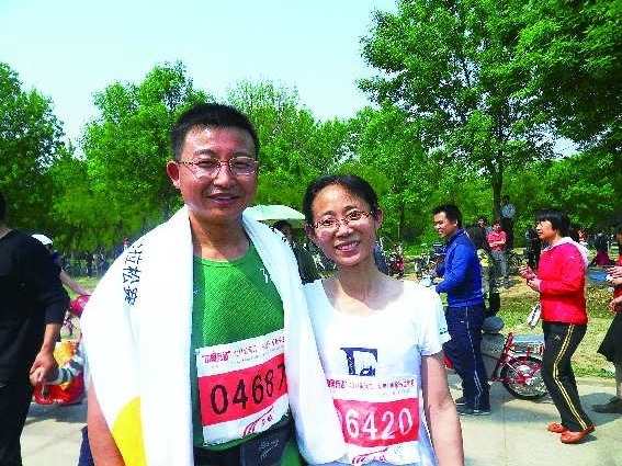 薛国壮是多威俱乐部的一名参赛选手,曾多次参加马拉松全程比赛。本次东营国际马拉松比赛与妻子一起参加,由于妻子第一次参加,薛国壮便放弃了全程比赛,改陪妻子一同跑半程,在比赛中见证了他们的爱。