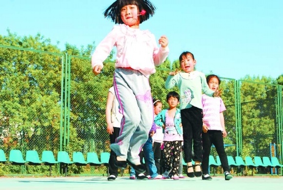 5月16日下午,辽河小区的运动场上,小朋友们在老师的带领下正开心地跳绳。记者从东营市气象台获悉,当日最高气温达26℃,预计17日气温将突破30℃,18日将达到32℃。