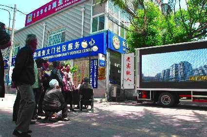 16日上午10点,在奎文门社区服务中心门前,一辆载着LED大屏幕的宣传车,正在播放视频,吸引了七八位市民驻足观看。记者发现,该屏幕有8平方米大,视频播放内容主要为东关街道相关简介以及创建文明城市的倡议宣传。而在宣传车前方,奎文门社区工作人员正在为前来咨询的市民处理问题。据介绍,便民利民、法律咨询等方面的问题都可以在此得到处理。