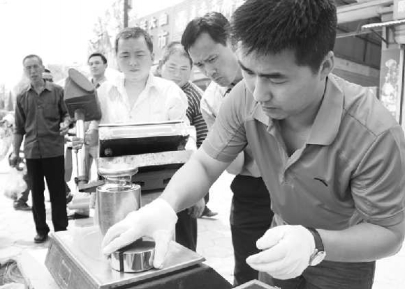 商贩常先生介绍,他的这些秤买了两年多了,检定过一次,现在也不知道准不准,干脆挨个测一下。经技术人员检测,常先生的电子秤误差每10kg仅差四五克,在规定的误差范围内。