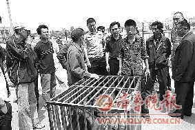 这个违法犬类交易市场位于王舍人坝王路上,农历逢二逢七都会有一些人在此买卖犬只。市场紧挨着一个小区,而且是小区出入通道。由于市场上经常会有一些大型犬、烈性犬,所以居民对这个狗市非常讨厌。“我们也多次对卖狗人进行警告,下发取缔通知书,可是并不见效。”王舍人庄派出所副所长李玉磊说道。