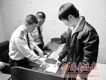 宋某在讯问笔录上按下手印。 (图片由警方提供)