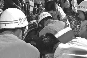 消防官兵赶到现场后立刻参与救援方案的讨论。据参与救援的消防员介绍,由于面包车被挤压得严重变形,车上还压了很多泥土和货车车厢,所以想直接利用扩张器扩展出救援空间不太可能,必须先把货车挪开。消防人员在得知面包车司机意识清楚,目前只是双腿被困,没有其他外伤的情况下,决定采取稳妥的救援方式:先通过两台吊车缓慢地将侧翻货车吊起,制造出救援空间后,再由消防人员带专业救援设备进行救援。此时,120救护车也赶到了现场,为了保持被困司机的体力,医生立刻给被困司机打上了点滴。