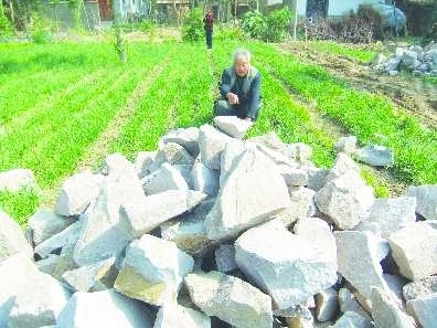 孙宗文告诉记者,这块菜园有半亩多,他已经承包种植35年了。“我今年已经70岁了,我们老两口就靠这半亩多菜园的收入维持生活。” 孙宗文说,22日中午,他去集市买东西回来后,一看地里多出来一堆建筑用的大石头,一些韭菜和刚种上的芸豆都被糟蹋了。23日早上他起床后,发现地里又多出了一堆石头。