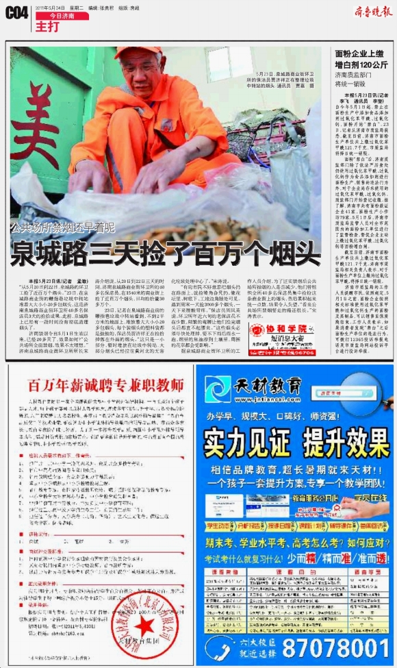 泉城路三天捡了百万个烟头