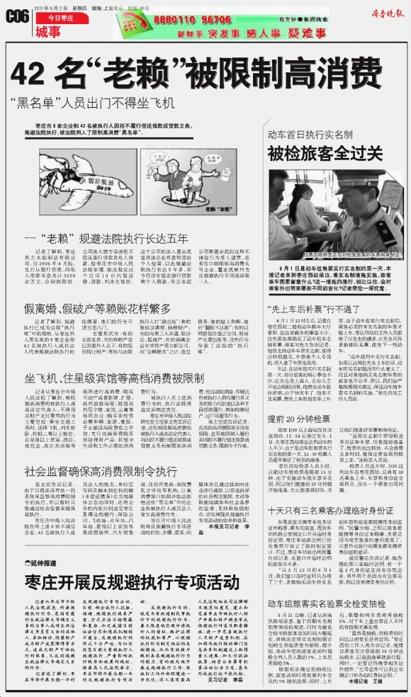 42名“老赖”被限制高消费