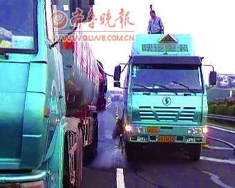 泄漏点是一处长达30厘米的裂缝,因其形状很不规则,很难采用木楔、气压等传统方式堵漏。唯一的办法,就是尽快将罐体的二甲基甲酰胺迅速转移。而此时,另一辆前来倒运的罐车却因堵车,正在距离事发地约50公里的地方赶来。