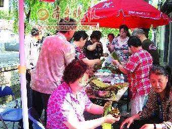 端午节包粽子、吃粽子,在曲水亭社区,每年都是大事。这一天不仅社区居民,就连搬走多年的老居民也会回来,共享粽子宴,共诉邻里情。3日,社区包粽子活动中,社区孤寡老人、独居老人以及那些端午节不能回家的环卫工人也加入了包粽子的行列。理粽叶的理粽叶,装米的装米,剪线的剪线,不一会儿的工夫,桌子上包好的粽子就堆成了小山,居民们在欢笑中提前过了一个愉快的端午节。 本报记者 殷亚楠 摄影报道