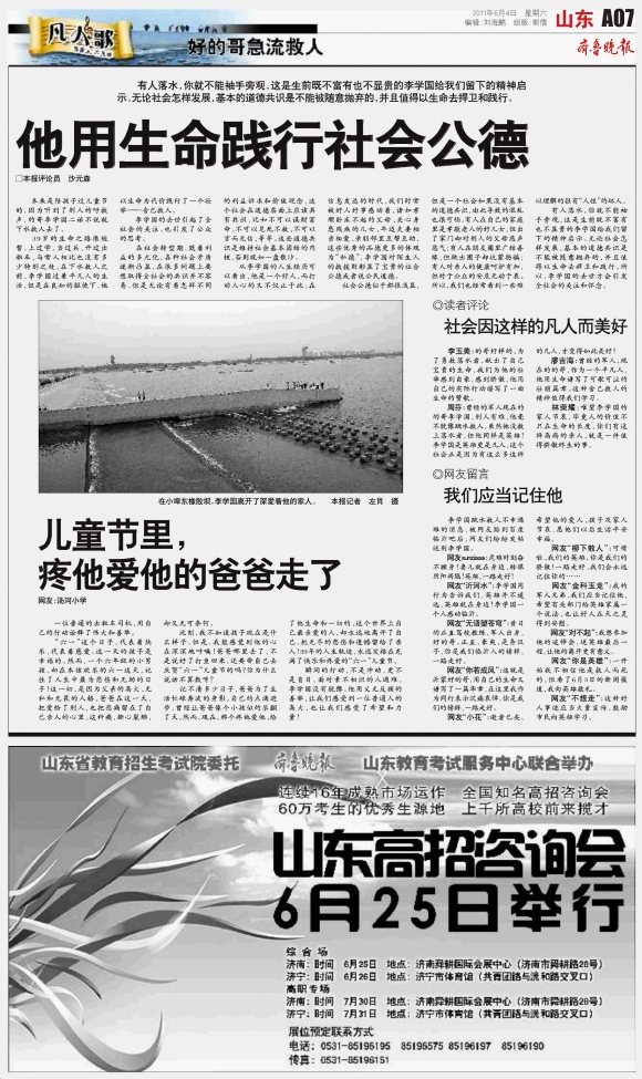 他用生命践行社会公德