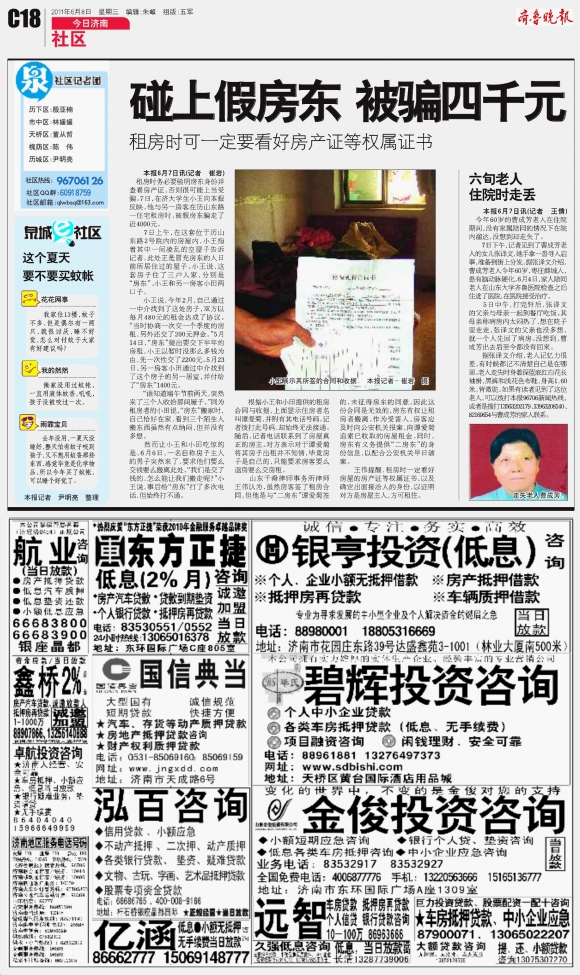 碰上假房东被骗四千元
