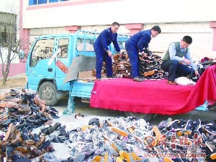 8日,乳山工商局执法人员在日常巡查中发现,一家店铺销售的彪马、阿迪达斯等名牌鞋,每双只要20元。而且刘某不能提供销货清单和进销货台账,运动鞋的做工也相当粗糙。经品牌生产厂家鉴定,该批运动鞋都属于侵犯注册商标专用权的产品。执法人员依法将500余双“名牌”运动鞋查扣。