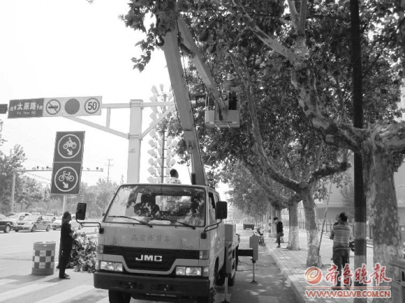 6月8日,本报接到市民的来电,称中华路与太原路交会处南北两侧的非机动车道上的交通指示灯被路旁大树的枝叶遮挡住。6月9日、10日,本报分别以《大树遮了交通灯》、《给树“理发”遭好心市民误解》为题,连续报道了该处交通指示灯被树枝遮挡、园林管理部门修砍树枝却遭好心市民误解的消息。