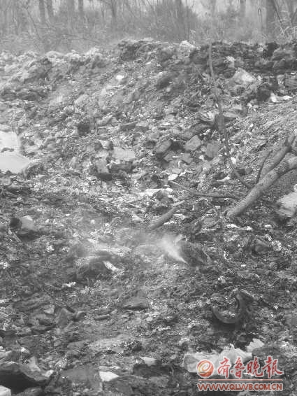 16日下午3时,记者第二次来到黄河十二路渤海八路西北角的垃圾堆。让人感到意外的是,14日傍晚时燃起的大火仍然没有烧尽,垃圾堆还在冒着丝丝缕缕的青烟。记者在现场看到,垃圾堆的外围又新添了大量生活垃圾和建筑垃圾。