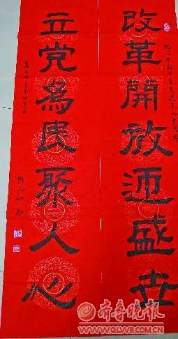 作者简介:杨殿国,1989年毕业于济宁学院艺术系,山东省美协会员,济宁市美协理事,在济宁市十六中学从事22年美术教育工作,作品多次参加入选各级名类大型展览,并多次获奖。这幅作品描绘了在中国共产党领导下的一片大好河山。