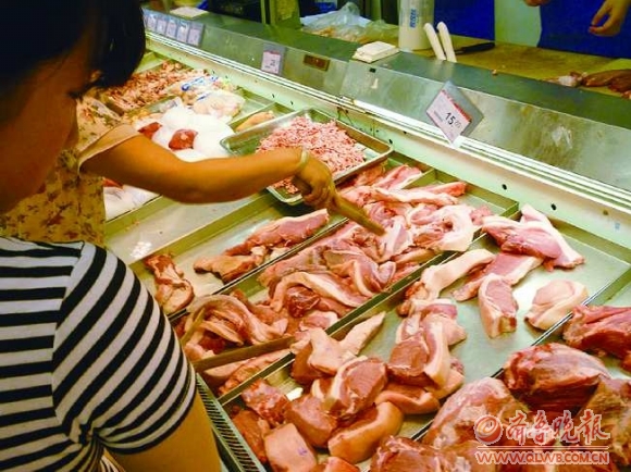 23日,市民在家家悦超市内选购猪肉,精肉价格已达到每市斤16.8元,
