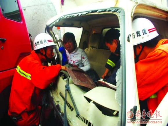6月26日,在枣庄滕州市级索镇发生一起交通事故,两车相撞,导致1名年轻妇女被困车内,情况危急。滕州消防官兵赶至现场后,经过十多分钟的救援,将妇女成功救出。