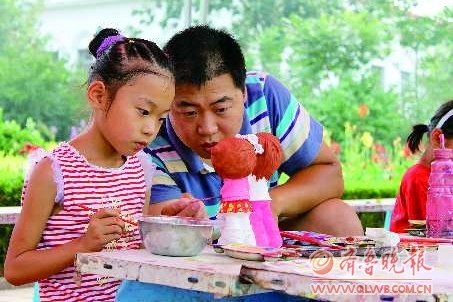 7月31日下午4时许,在新湖风景区附近,路边的石膏彩绘吸引了很多人的眼光,小孩子们充分发挥着自己的想象把各式各样的洁白石膏像涂上自己认为好看的颜色,而大人则可以借此寻找一下童年的乐趣。