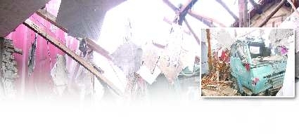 现场:外墙破裂 屋顶坍塌 主梁裸露