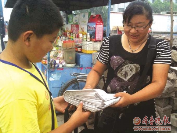 本报泰安8月1日讯(记者王颜)“每天我都从固定的报童那里订几份报纸,这样做既能帮他减轻负担,也为我们招揽了顾客。”8月1日,在儿童医院附近开餐馆的老板说。