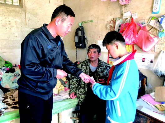 本报3月29日曾报道11岁的商河男孩郭玉虎因母亲去世,父亲精神恍惚不得不扛起整个家一事。报道发出后引发关注,众多市民表达救助的意愿。17日,爱心市民及济南哮喘病医院医护人员来到郭玉虎的家,进行公益捐助,要帮助实现郭玉虎“让爸爸的病好起来”的愿望。 本报记者 刘晓旭 摄影报道