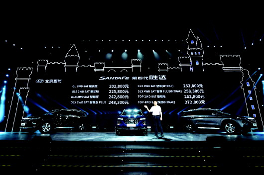4月13日,北京现代第四代胜达在海南·三亚上市,共推出8款配置车型,售价区间20.28万—27.28万元。