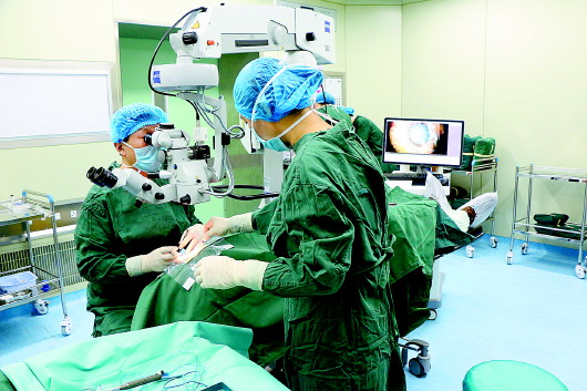 明水眼科医护人员正在进行白内障手术。